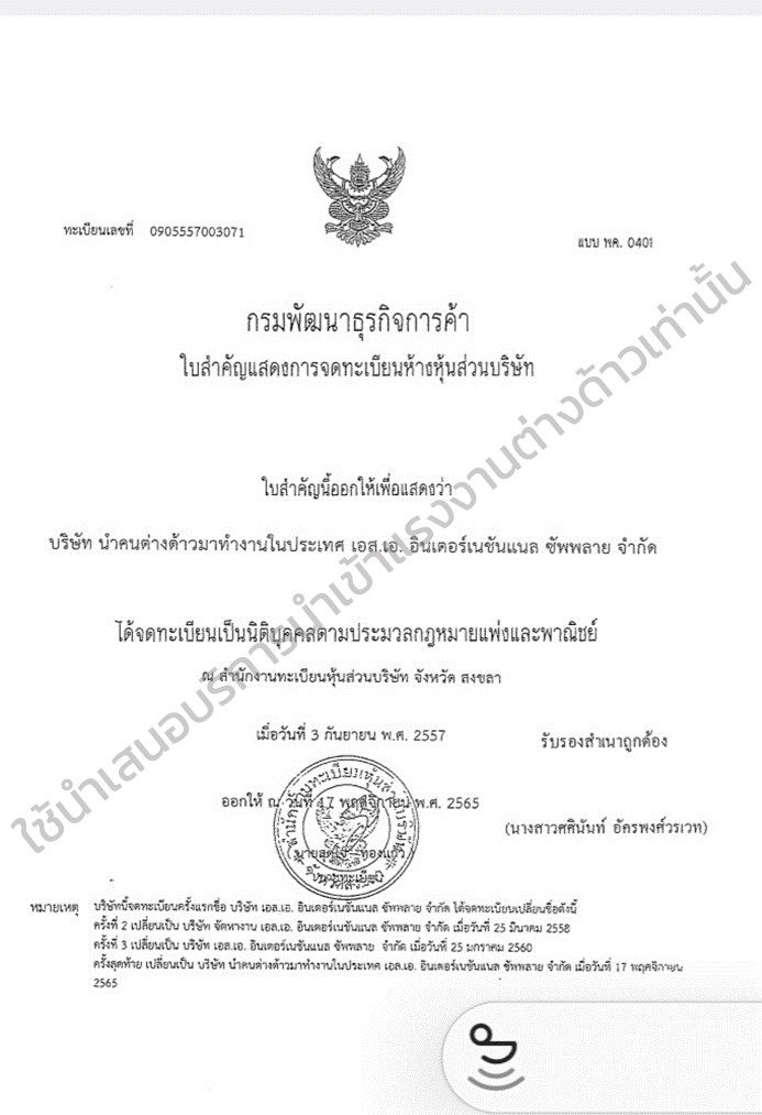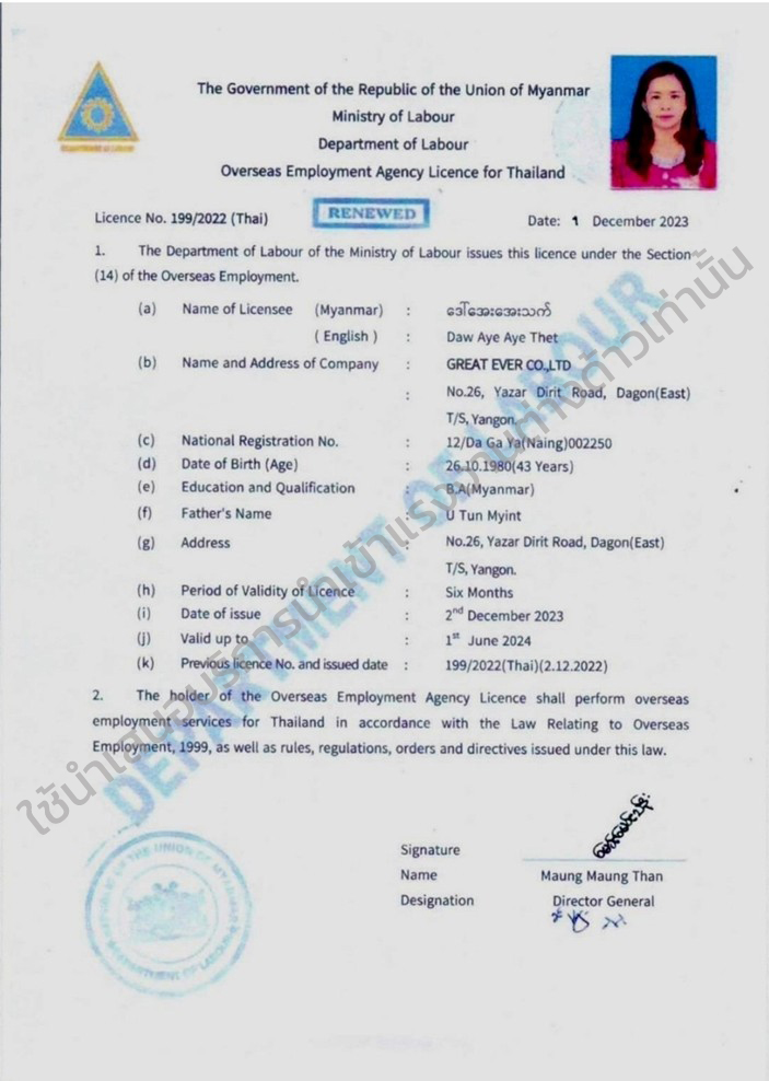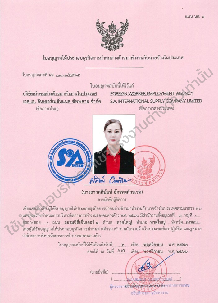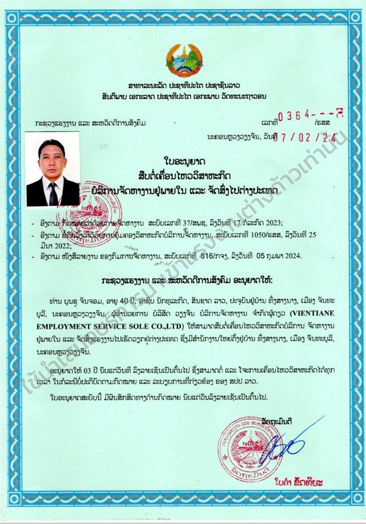 ดำเนินธุรกิจให้บริการด้านแรงงานต่างด้าวอย่างครบวงจร ในการนำเข้าแรงงานต่างด้าว(MOU) สัญชาติเมียนมาร์ ลาว กัมพูชา ตั้งแต่ขั้นตอนการเตรียมเอกสารไปจนถึงการจัดส่งแรงงานมาสถานที่ทำงาน ให้บริการคำปรึกษาในด้านข้อกฎหมายที่เกี่ยวข้องกับการจ้างแรงงานต่างด้าว อาทิ ใบอนุญาตทำงาน (Work Permit), VISA, การรายงานตัว 90 วัน, การแจ้งที่อยู่อาศัย, ดำเนินการบริการด้านพาสปอร์ต ประเภทต่างๆ โดยผู้เชี่ยวชาญที่มีความรู้และประสบการณ์ในการทำงานเกี่ยวกับแรงงานเป็นอย่างดี